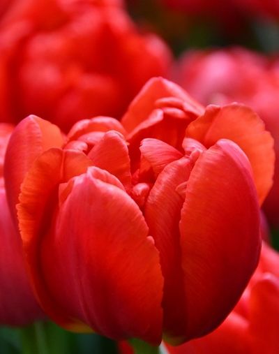 - Цветки: красно-розовые, с перьевидным распределением цвета (на некоторых цветках — зеленоватые оттенки).