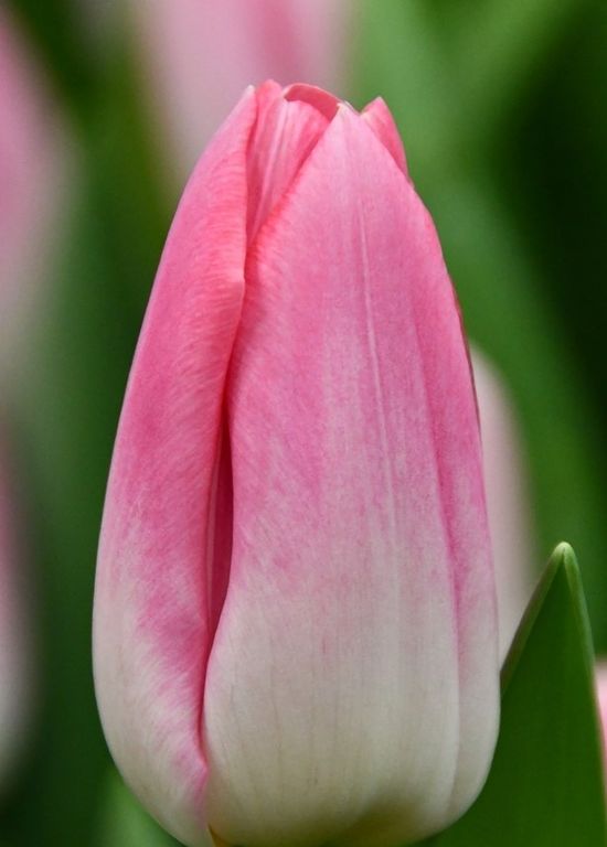 - Бутоны крупные, бокаловидной формы, высота — до 7 см, диаметр — 5–6 см. Каждый бутон состоит из 6 лепестков, основание которых окрашено в белый цвет, плавно переходящий в нежно-розовый к краям лепестков.